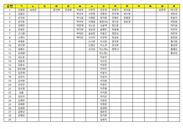 3월 22일(일)휴일 자습 명단(종합/퍼플반)가나다순
