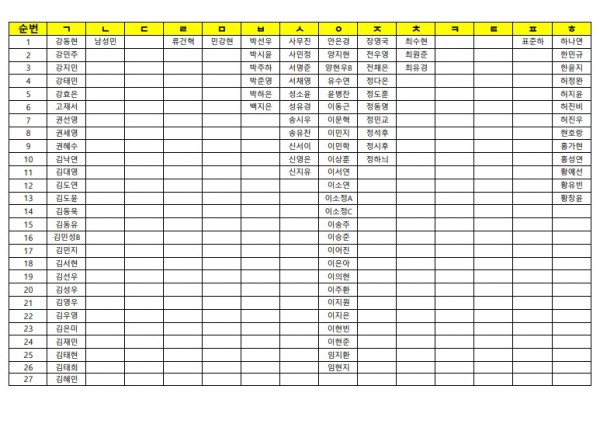 3월 29일(일)휴일 자습 명단(종합/퍼플반)가나다순