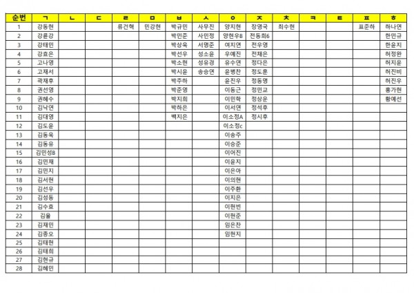 4월 19일(일)휴일 자습 명단(종합/퍼플반)가나다순