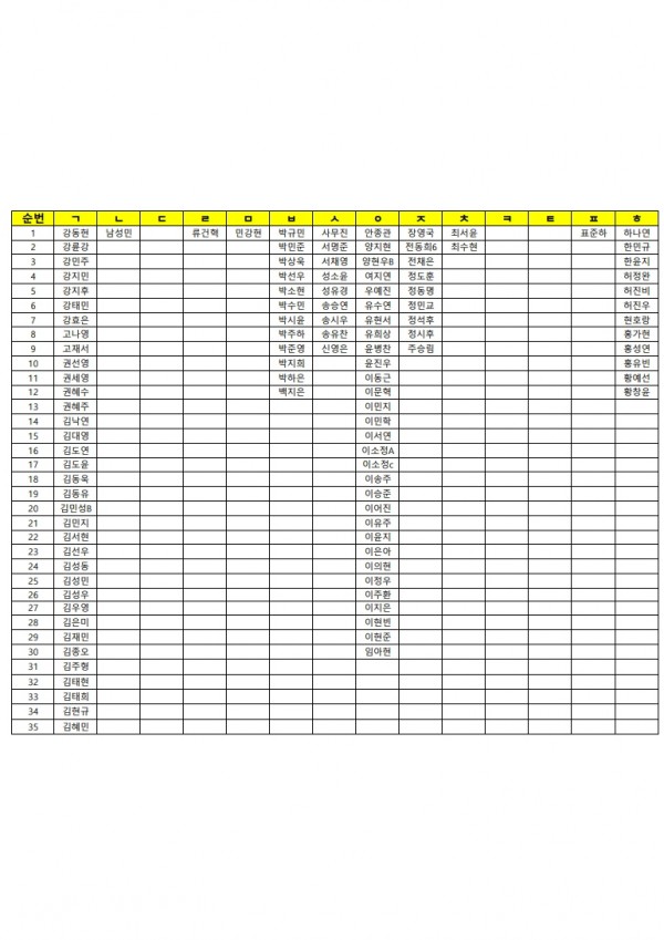 4월 26일(일)휴일 자습 명단(종합/퍼플반)가나다순