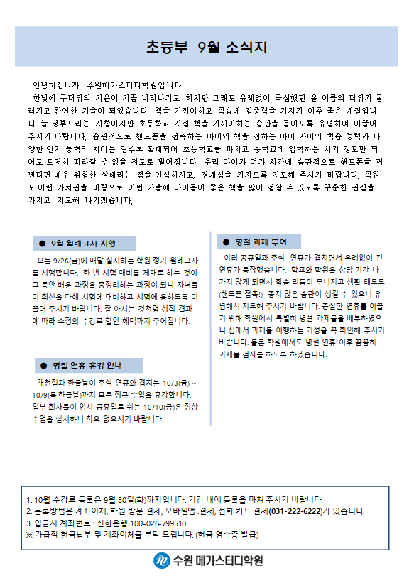 초등 [초등] 9월 가정통신문
