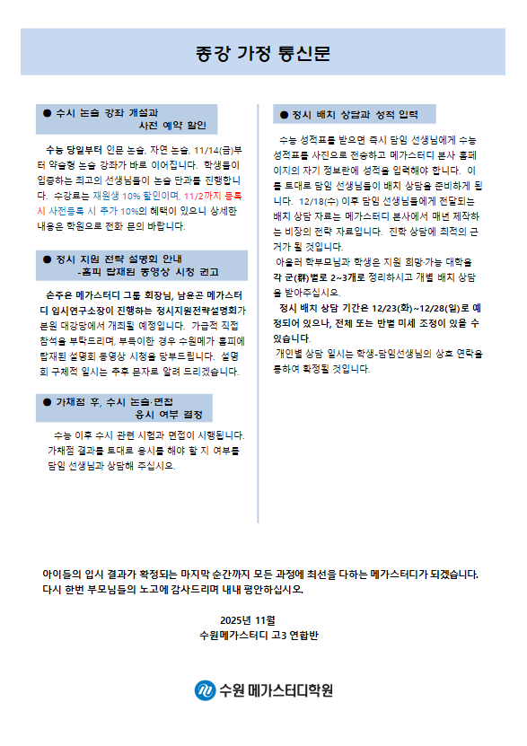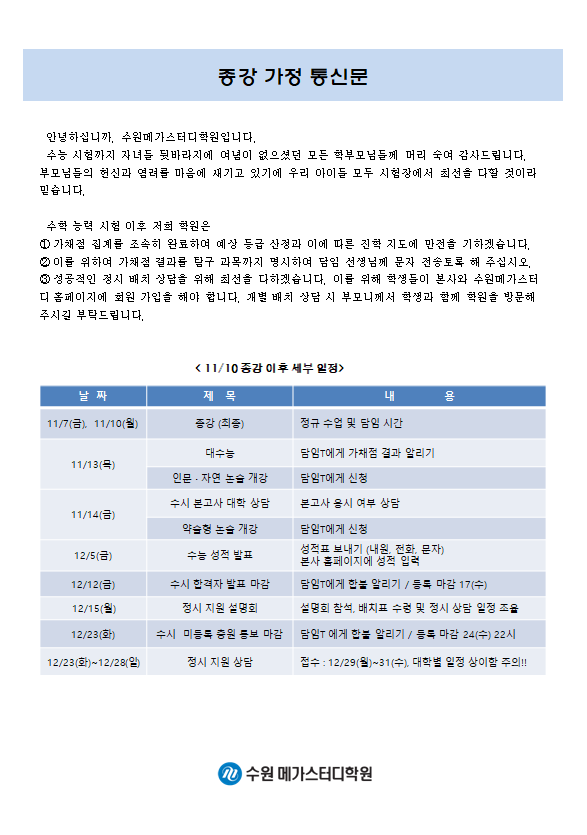 고등 [고3] 종강통신문
