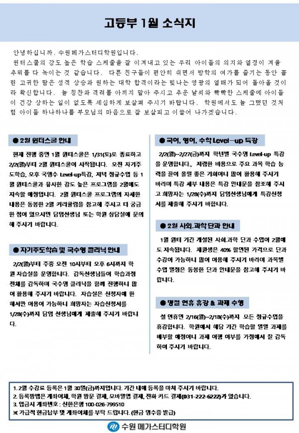 고등 [고등] 1월 가정통신문