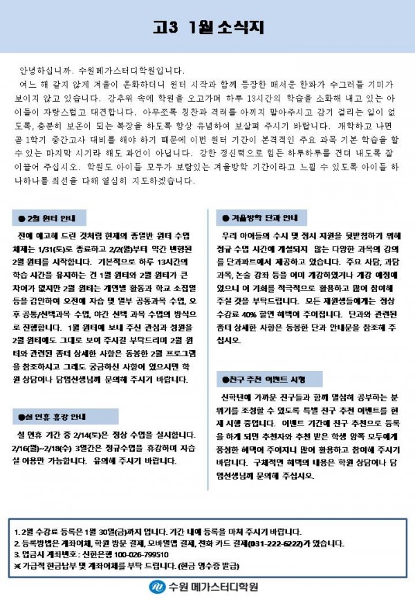 고등 [고3] 1월 가정통신문