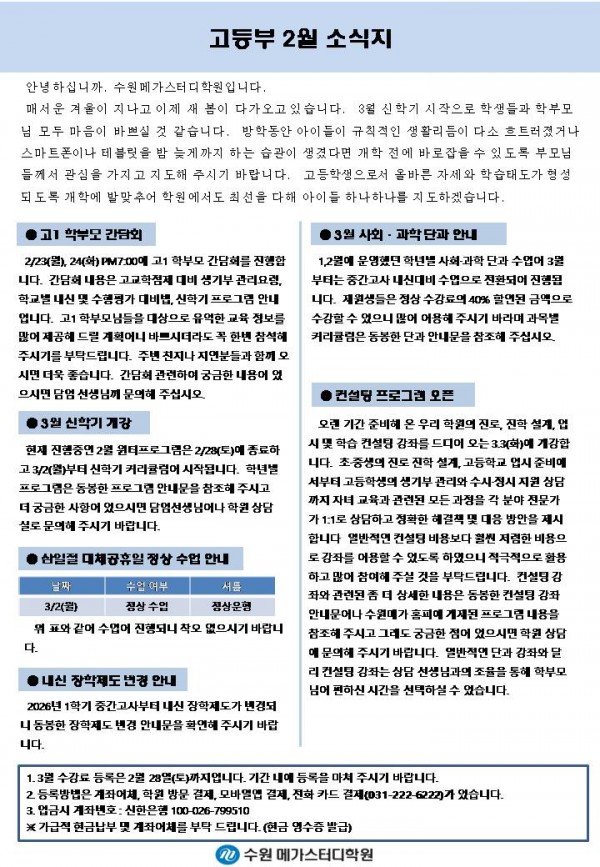 고등 [고등] 2월 가정통신문
