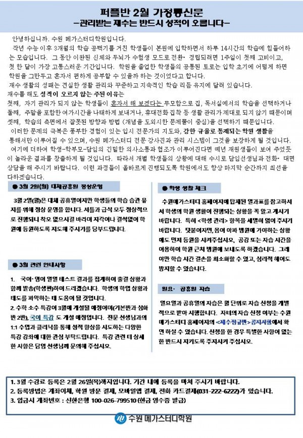 재수 [퍼플] 2월 가정통신문